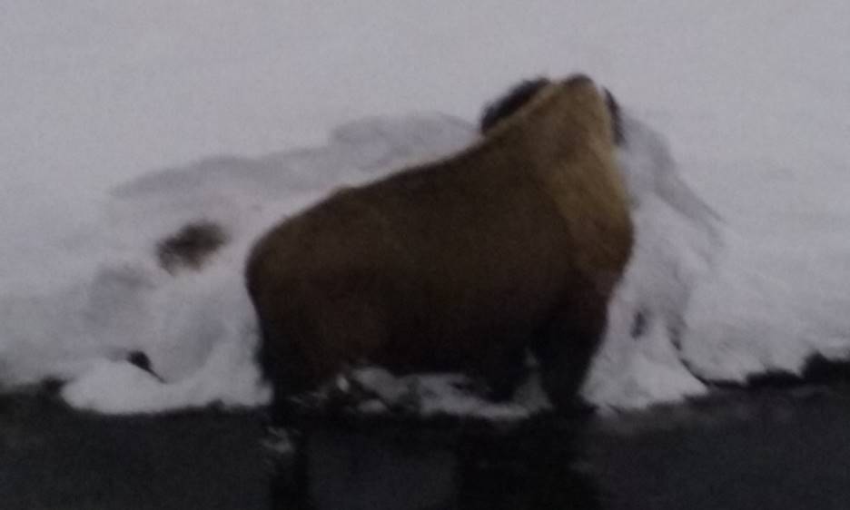Bison Shoveling Snow to Expose Plants near Soda Butte